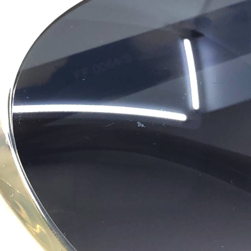 左目にあたるグラスの表面に小キズが見られます。平地に置いた時に左右のテンプルの高さが異なります。