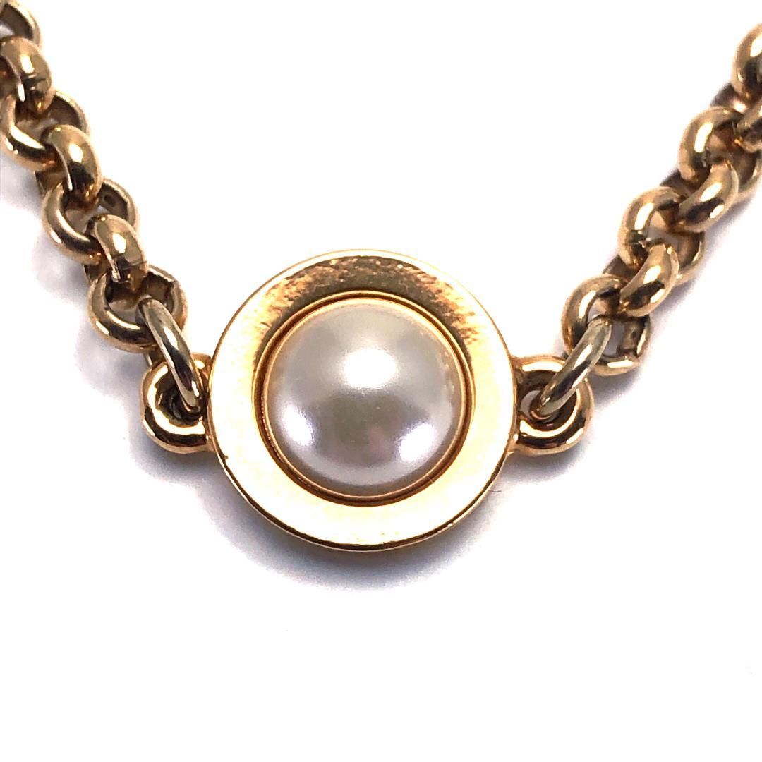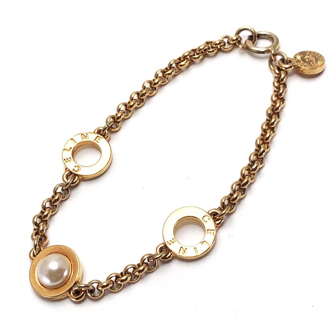 【希少・美品】CELINE セリーヌ/サークルロゴ フェイクパール ブレスレット/GP/ゴールド・ホワイト