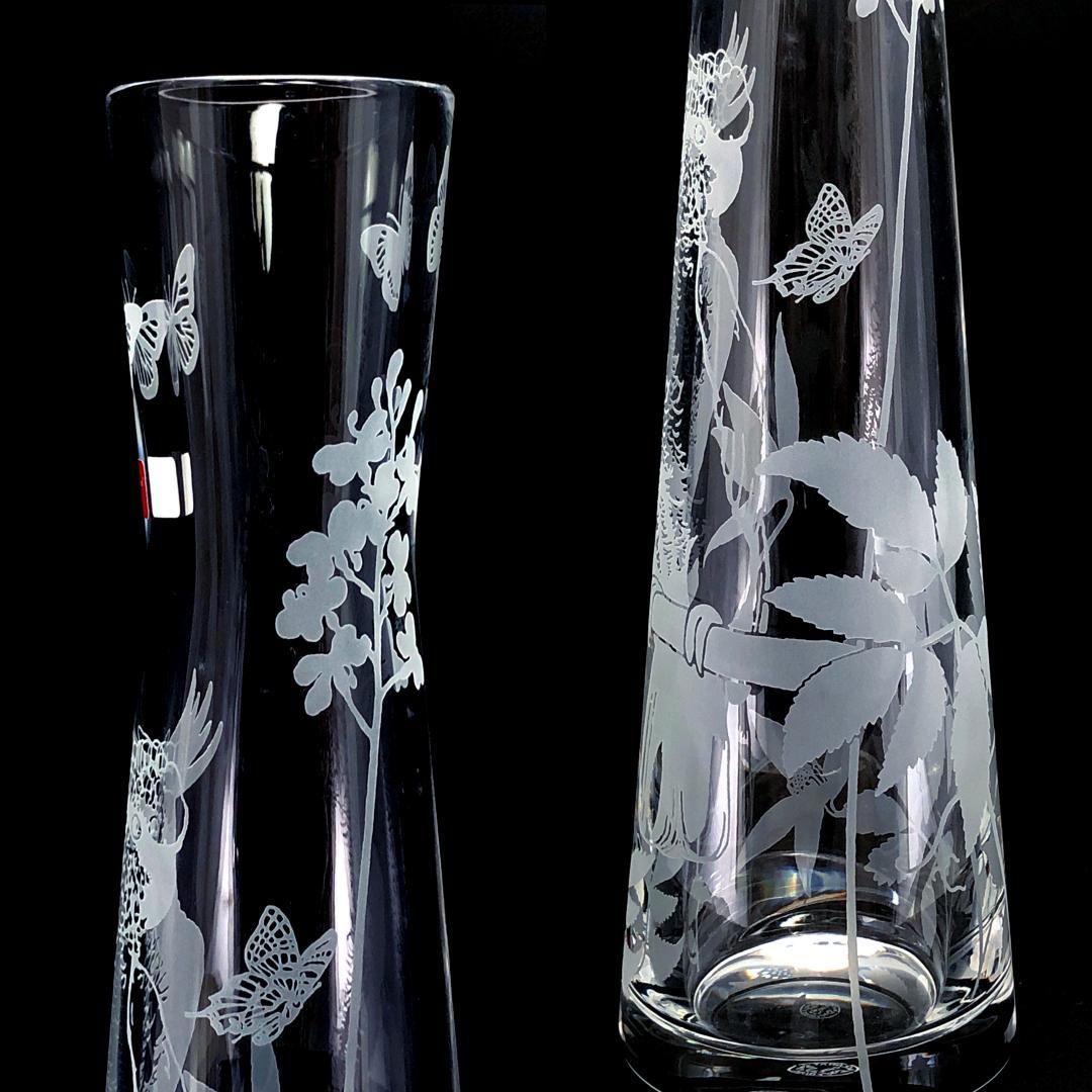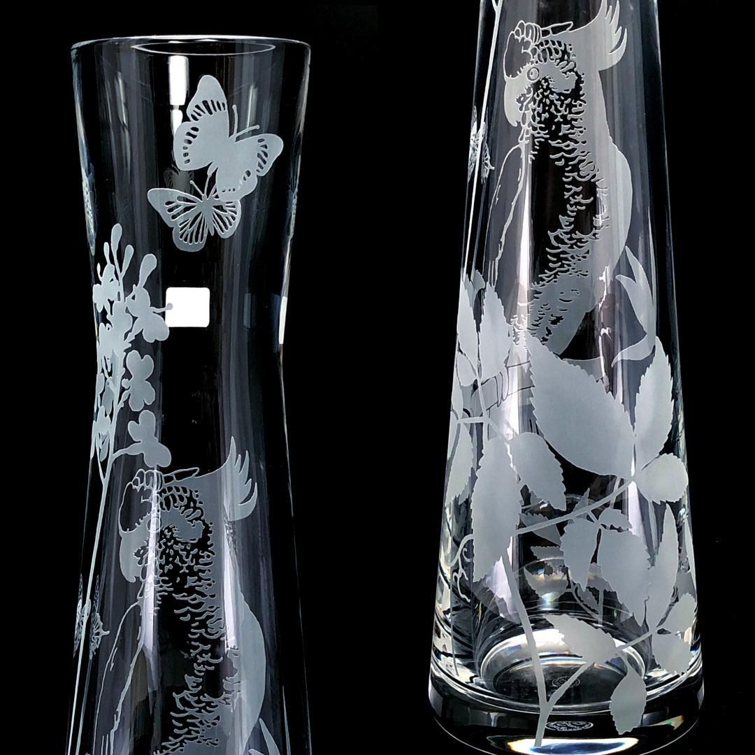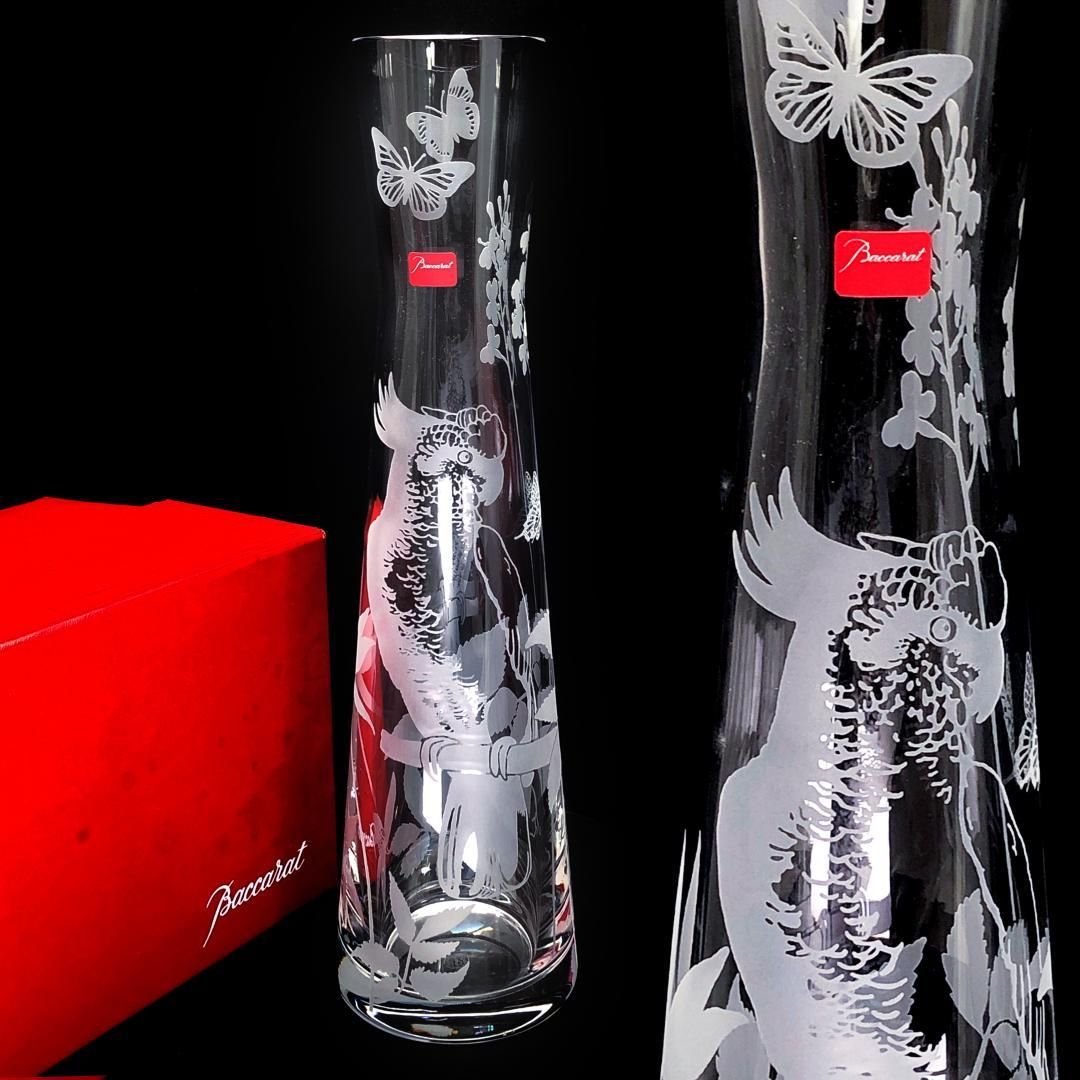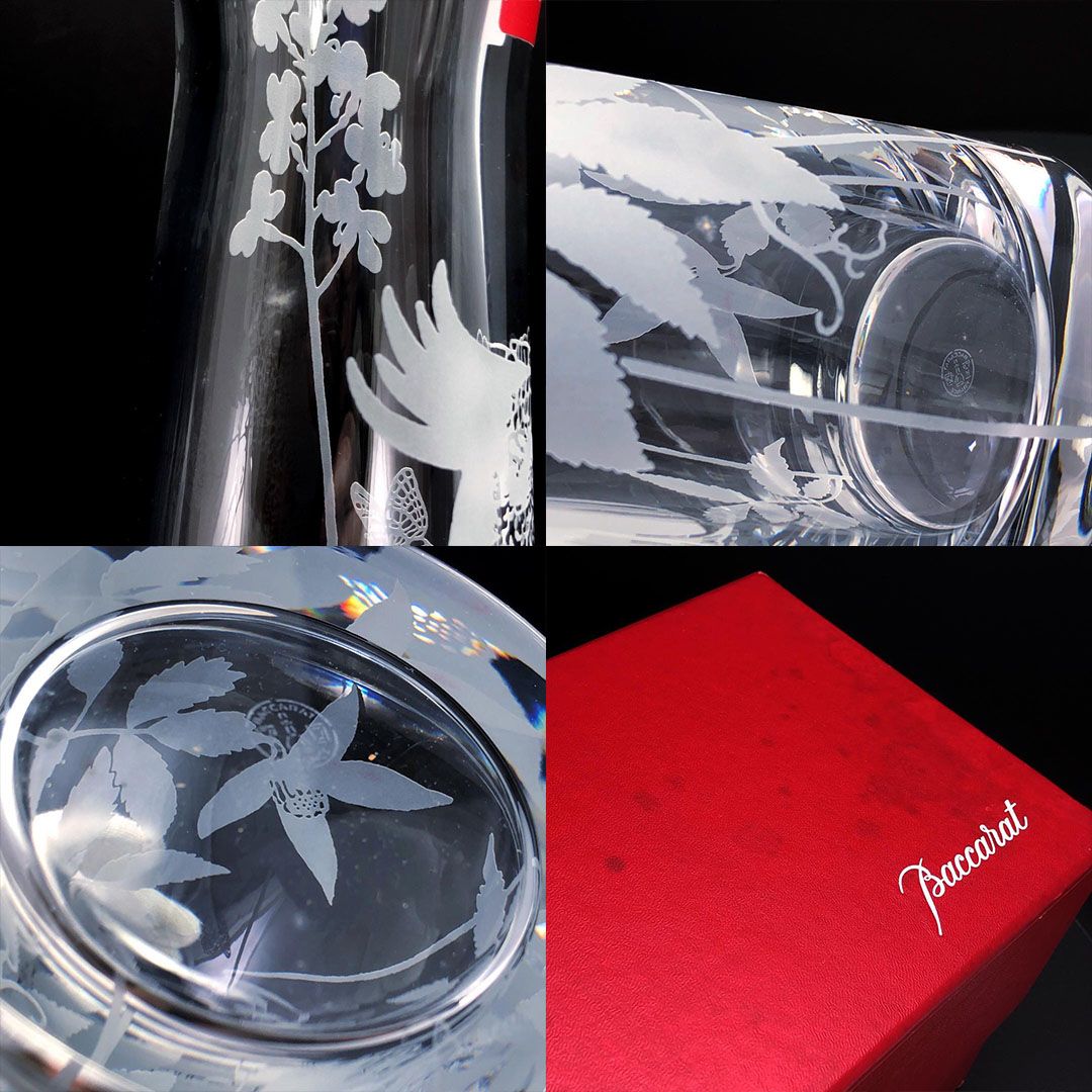 【希少】Baccarat バカラ/ポエティックガーデン オウム&蝶柄 フワラーベース/クリスタルグラス/クリア/BC492