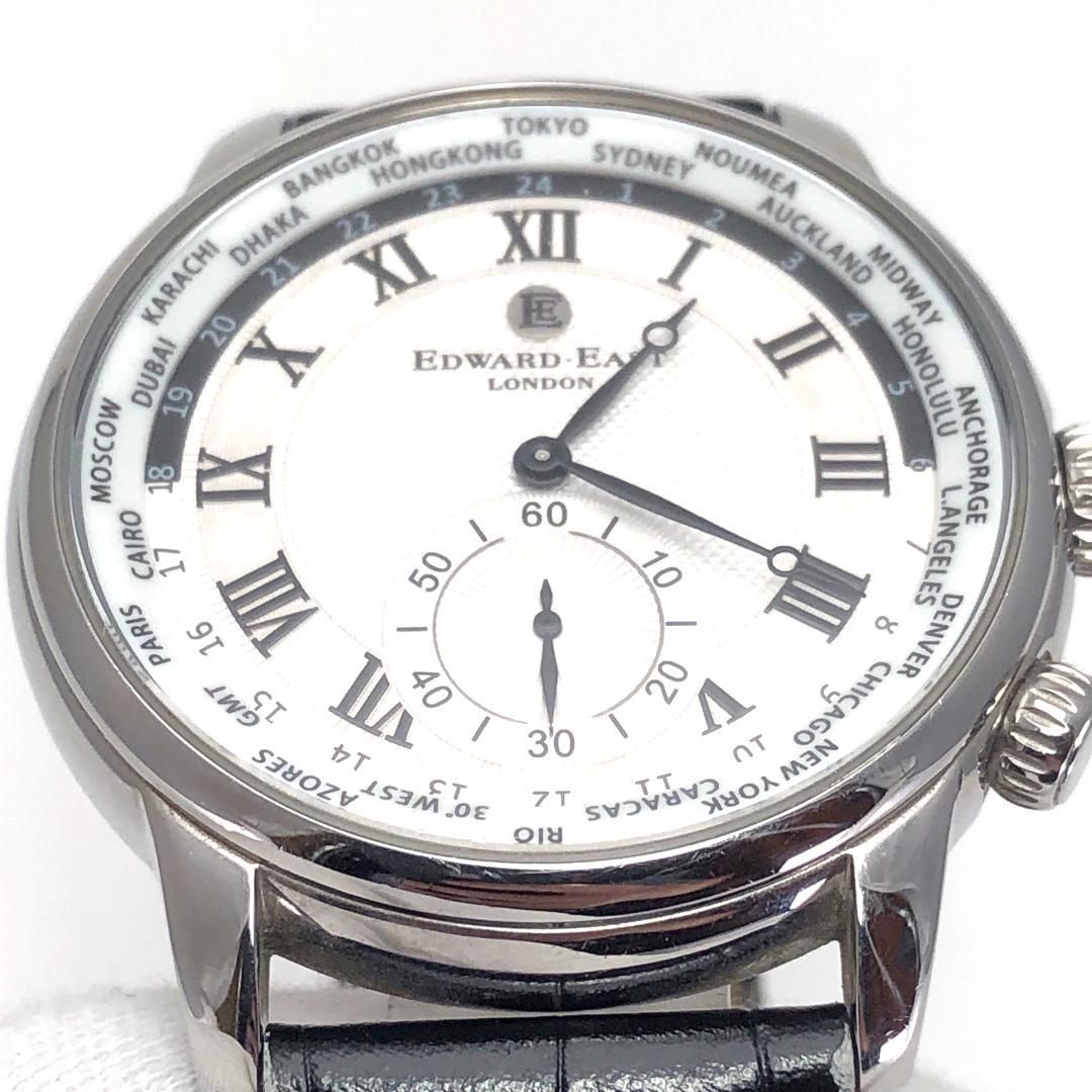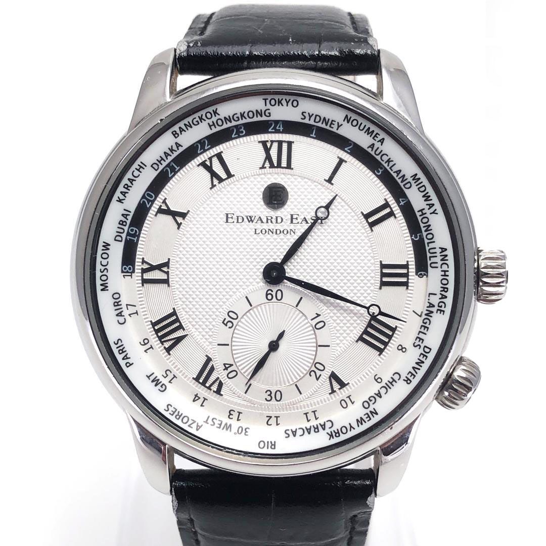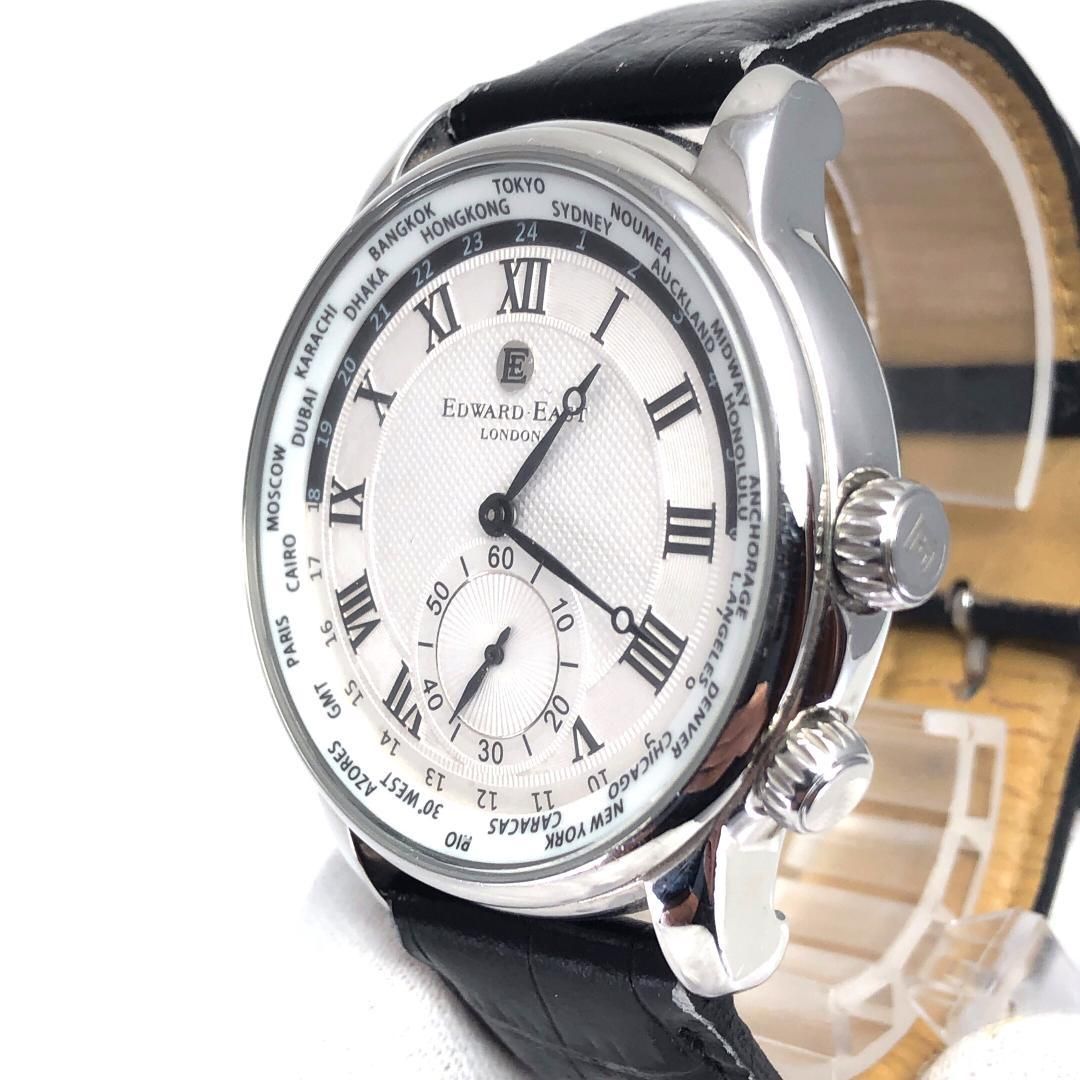 【美品】エドワードイースト/ワールドタイマー EDW1960G18/クォーツ/特徴/ステンレス・レザー/シルバー・ブラック