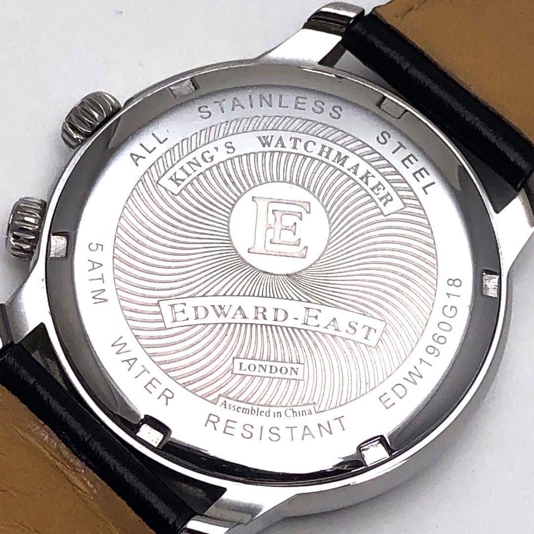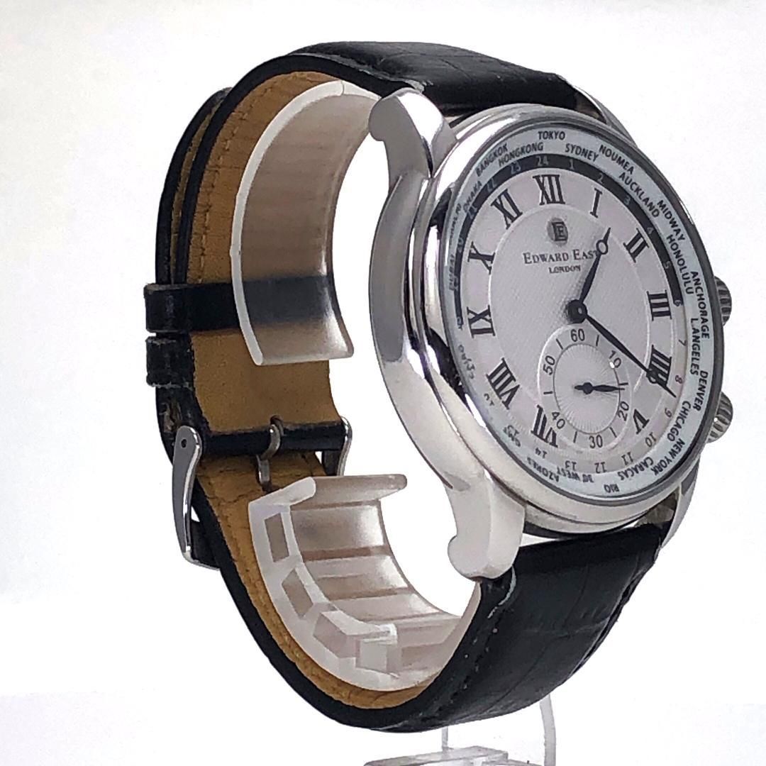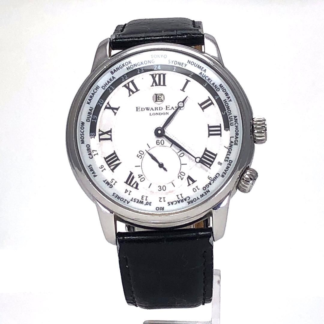 【美品】エドワードイースト/ワールドタイマー EDW1960G18/クォーツ/特徴/ステンレス・レザー/シルバー・ブラック