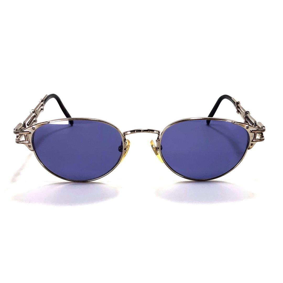 【美品・ケース付】Jean Paul Gaultier ジャンポールゴルチエ/オーバル型 サングラス/ネジモチーフ/メタル・グラス/ブルー・パープル・シルバー