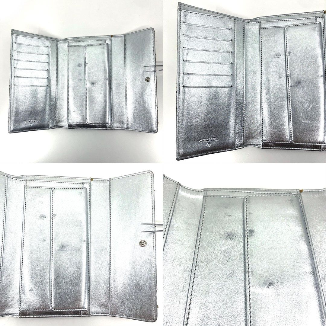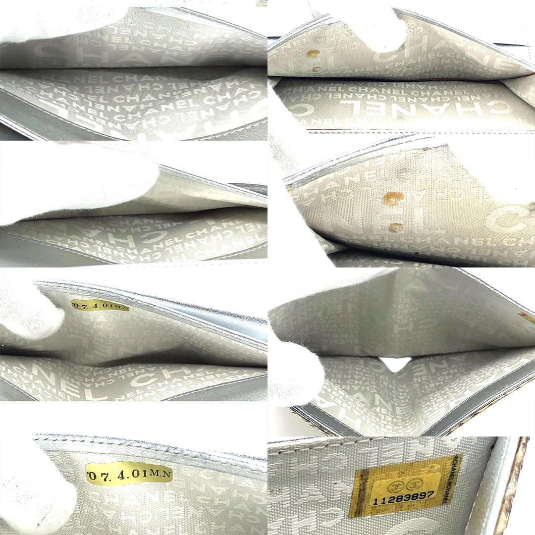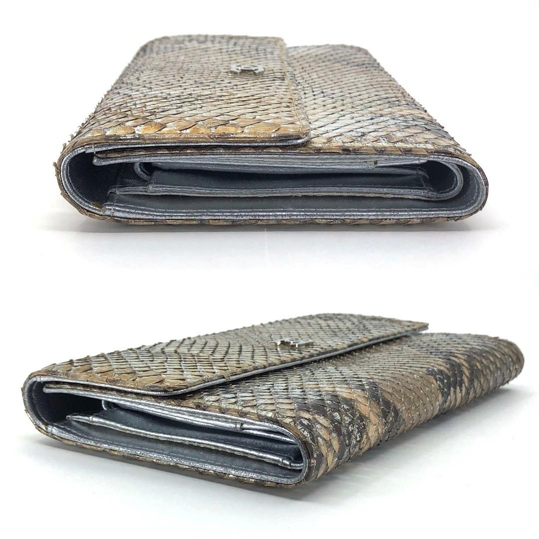 【美品・シール有・ギャランティカード付】CHANEL シャネル/パイソンレザー シルバー 長財布/レザー/シャンパンゴールド・メタリック