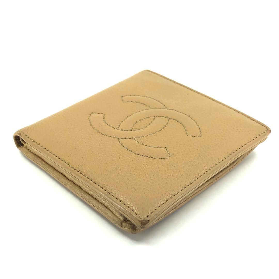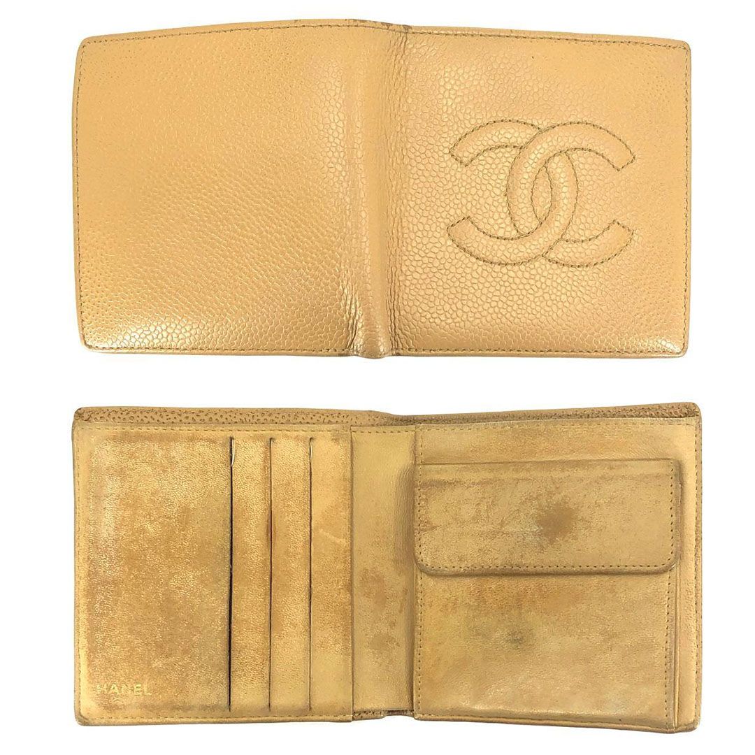 【美品・シール有】CHANEL シャネル/キャビアスキン ココマーク 二つ折り財布/レザー/イエロー