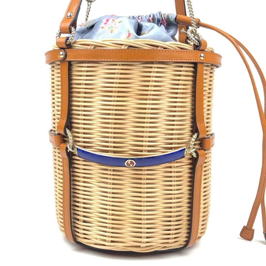 【美品・収納袋付】GUCCI グッチ/ウィッカー スモール バケツ ショルダーバッグ/524830ダブルG/レザー・かご・ファブリック/ベージュ・ライトブラウン