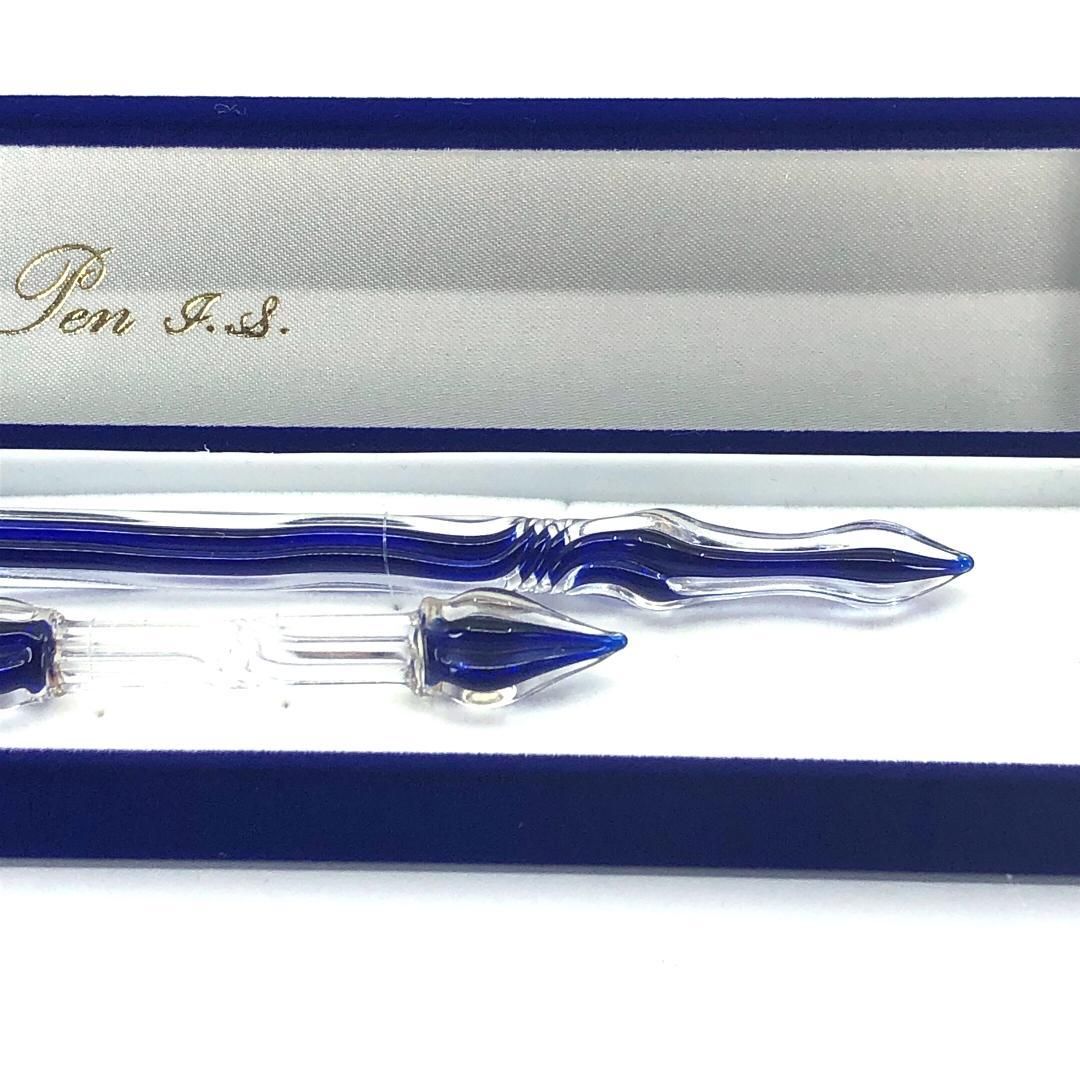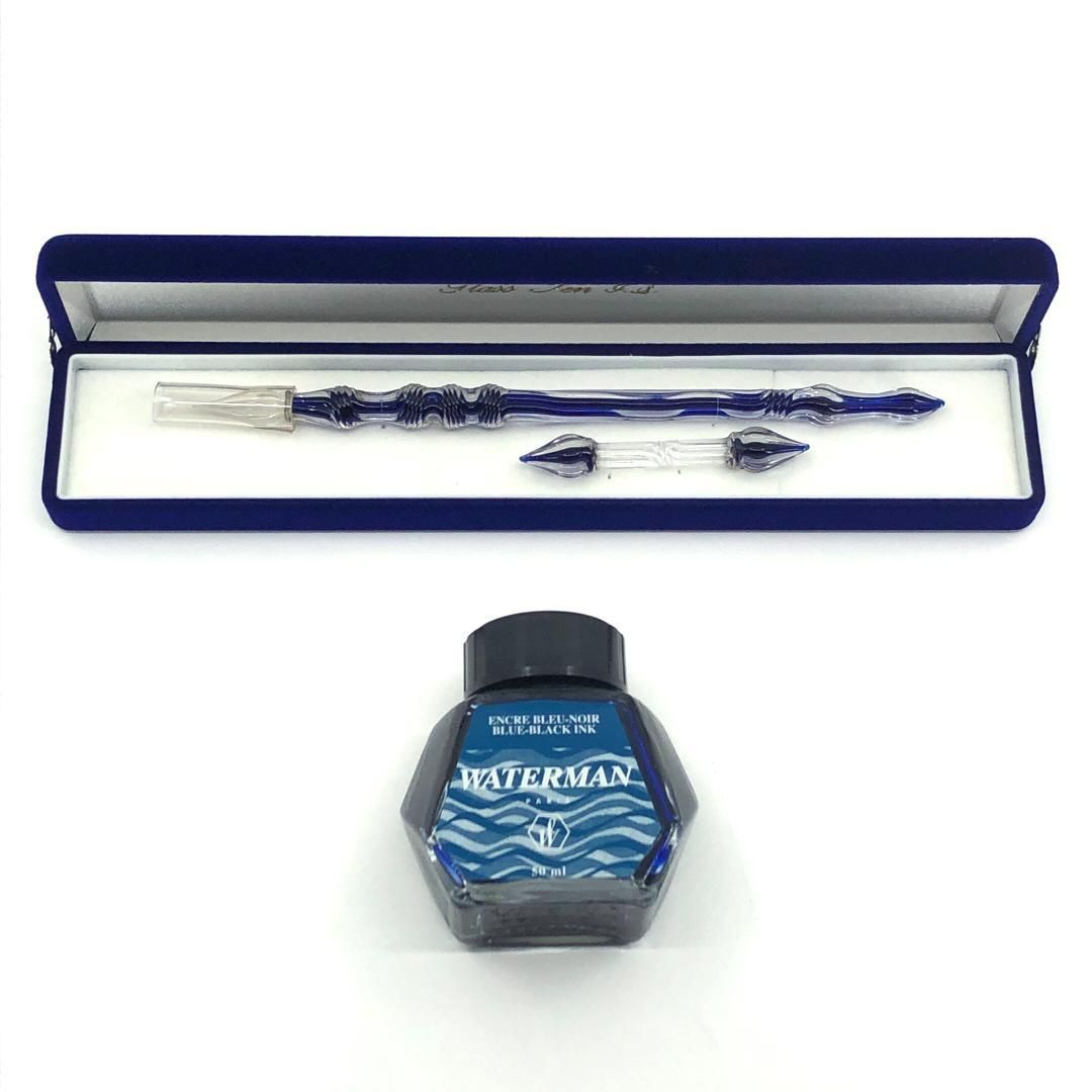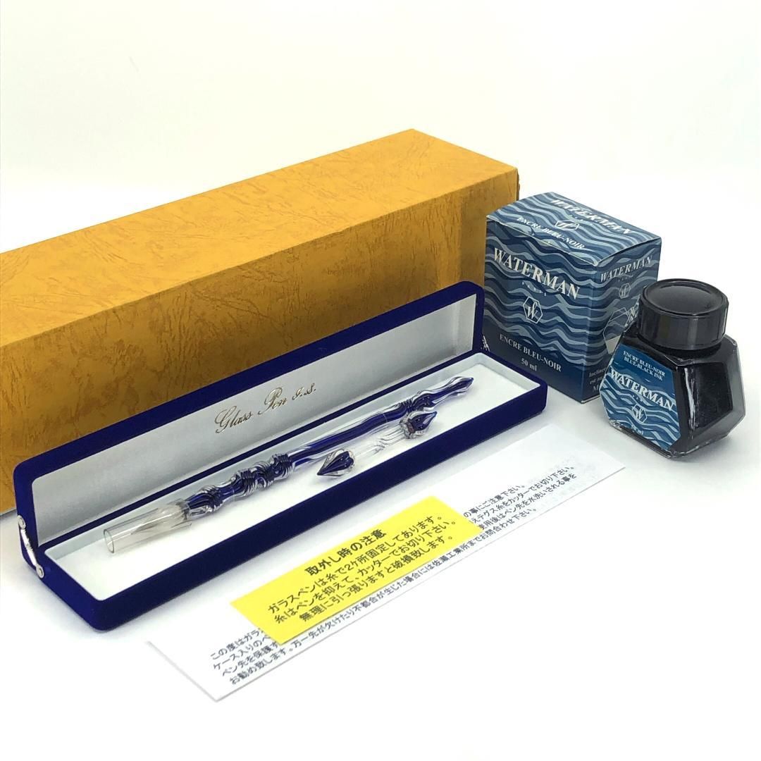 【美品・箱付き】佐瀬工業所/ウォーターマン ガラスペン インクボトル セット/グラス/クリア・ブルー