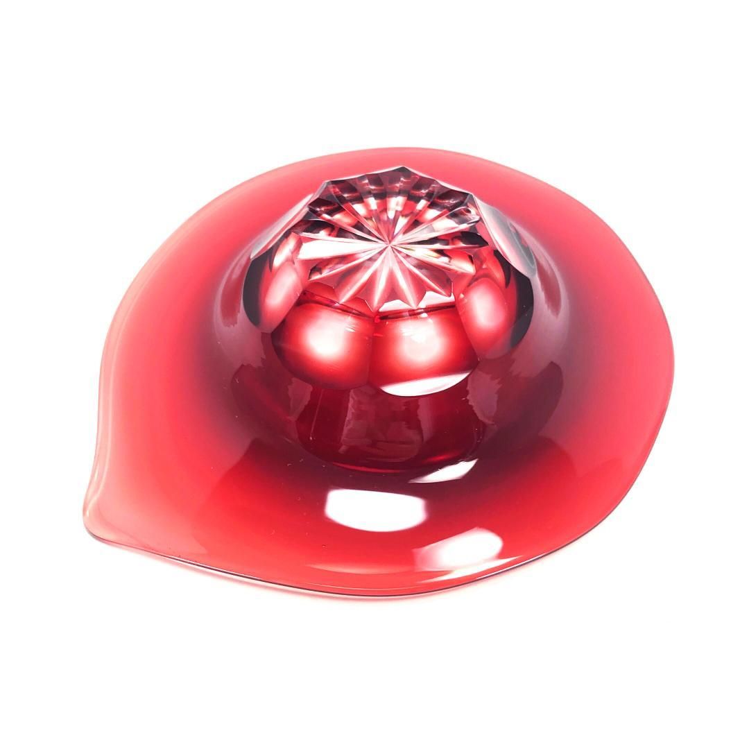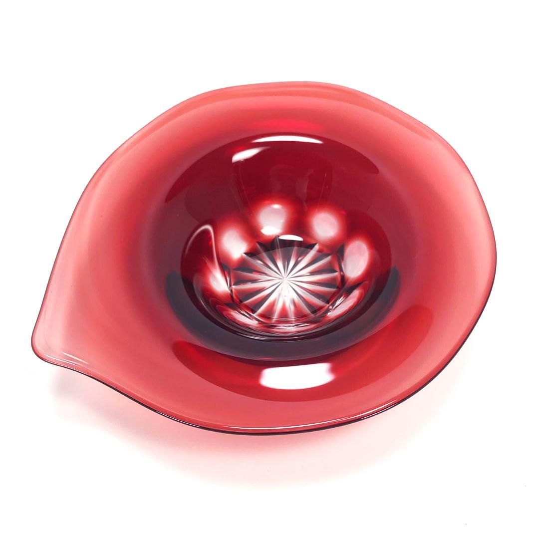 【美品・箱付き】島津/薩摩切子 磯斉彬竈 被せガラス 小皿/ガラス/レッド