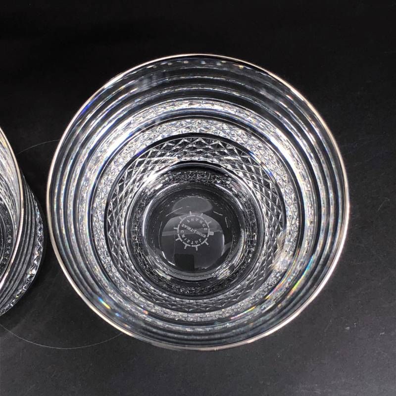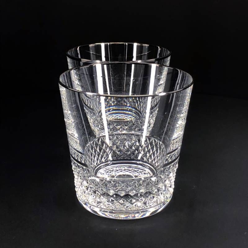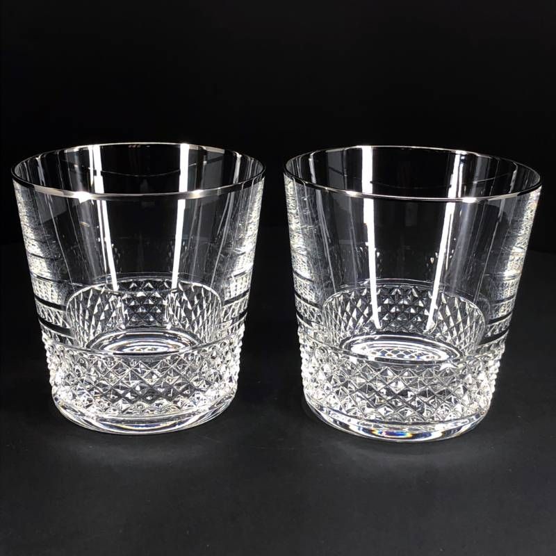 【美品・箱付き】SAINT-LOUIS サンルイ/ダイヤカット シルバーリム ペアグラス/クリスタルグラス/クリア・シルバー