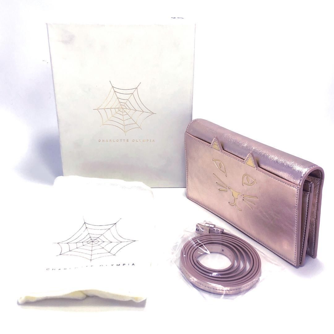 【美品・箱・保管袋付】Charlotte Olympia シャルロットオリンピア/ショルダーバッグ/猫/レザー/シャンパン ピンク