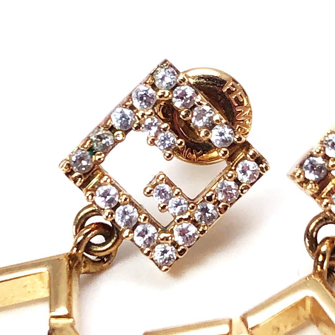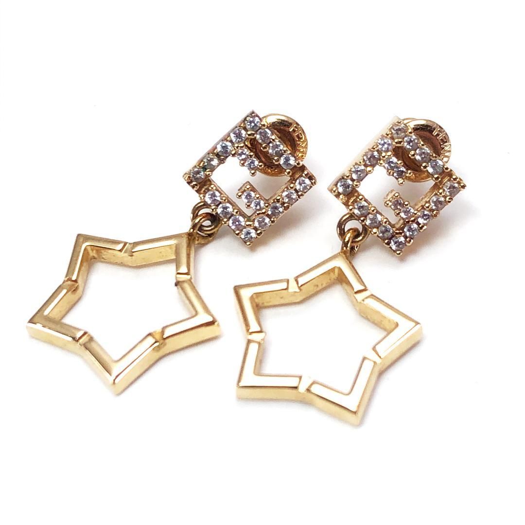 【美品】FENDI フェンディ/スターモチーフ ピアス 3523/FF スワロフスキー/GP/ゴールド
