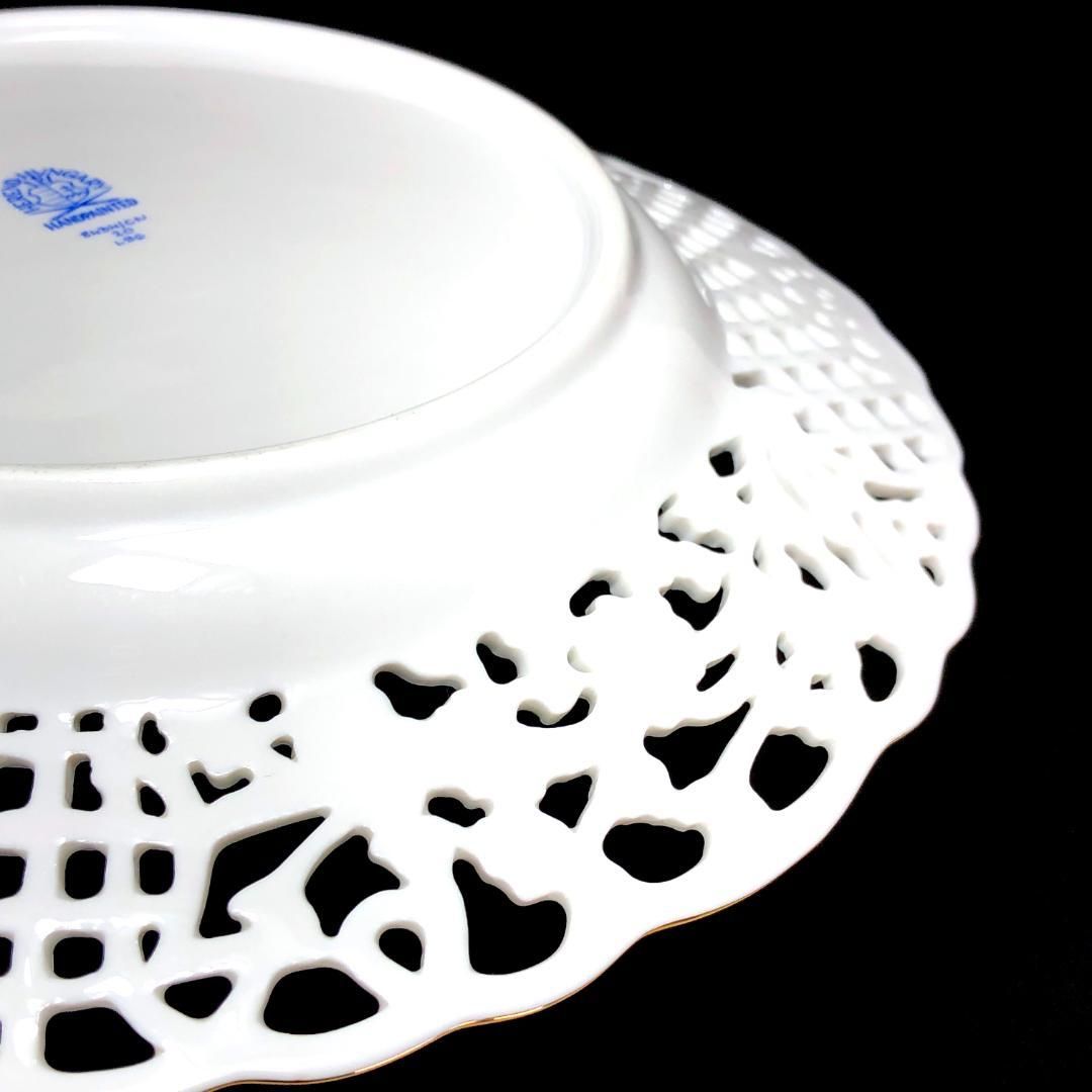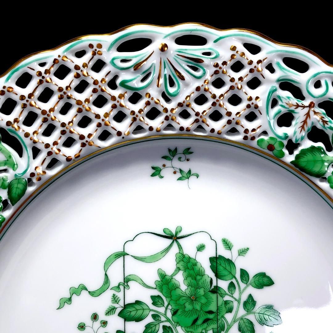 【美品】HEREND ヘレンド/清の花籠 皿 プレート/透かし 金彩/陶器/ホワイト・グリーン