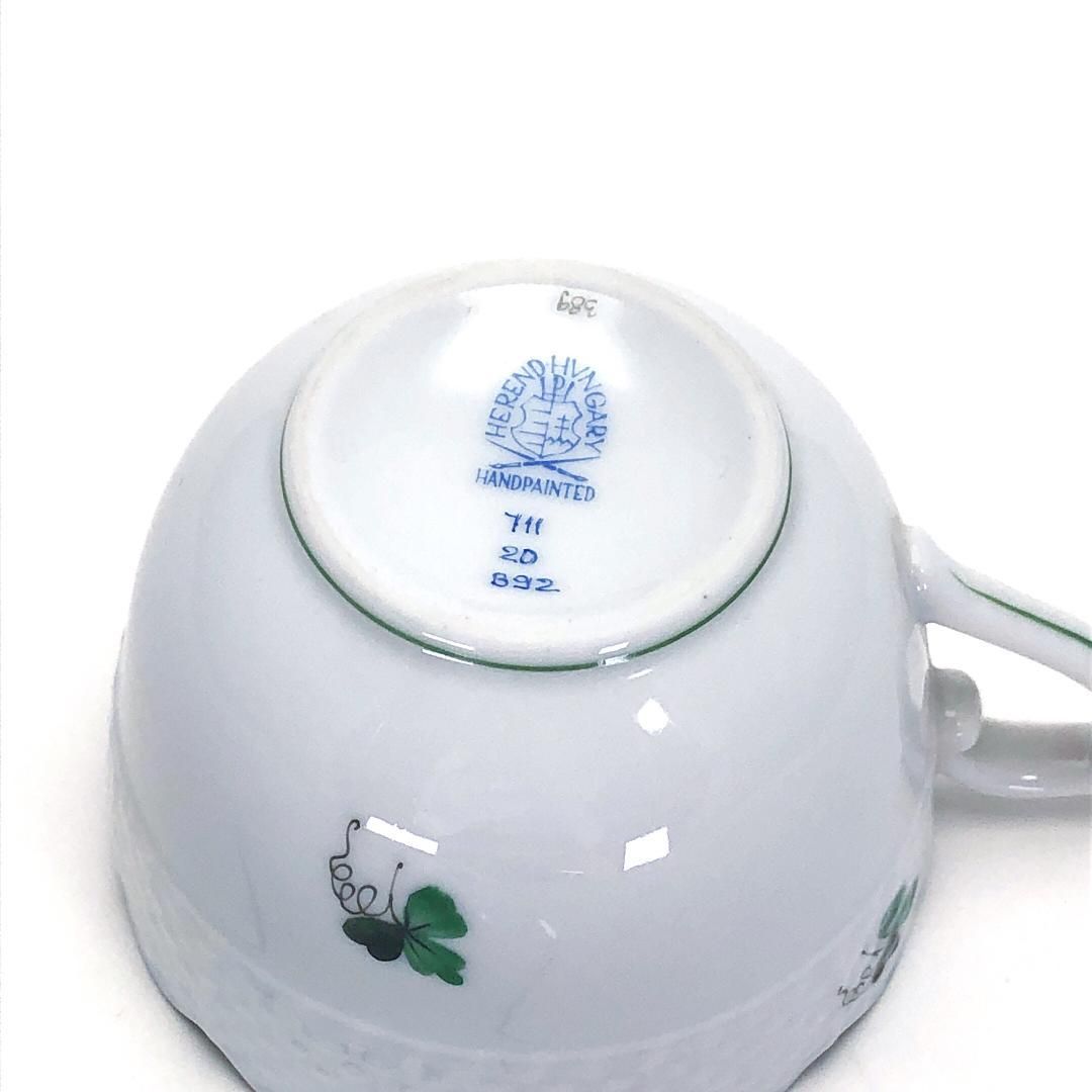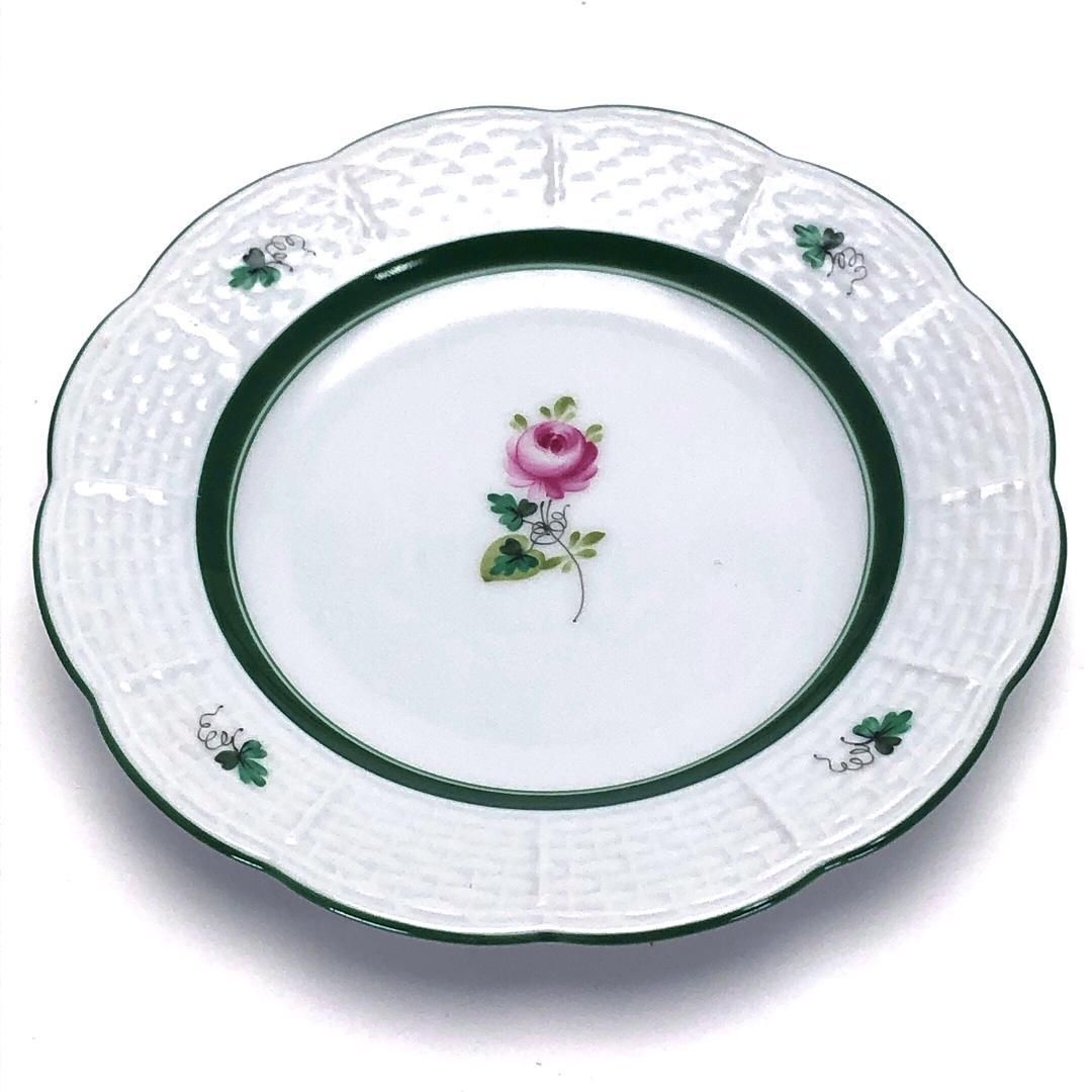 【美品】Herend ヘレンド/ウィーンのバラ デミタス カップ&ソーサー・デザート用ミニ皿 セット/陶器/ホワイト・グリーン