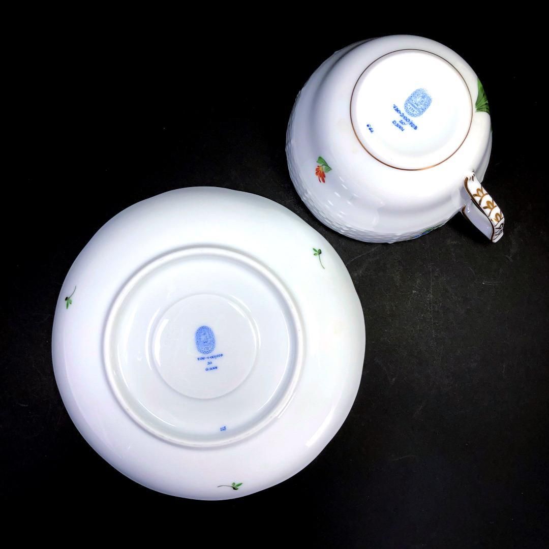 【美品】HEREND ヘレンド/バコニーの春&チューリップの花束 ペア カップ&ソーサー/フローラル・花/陶器/ホワイト・マルチカラー