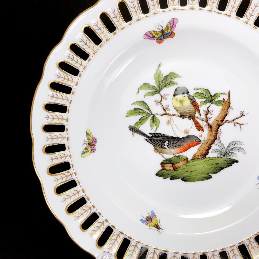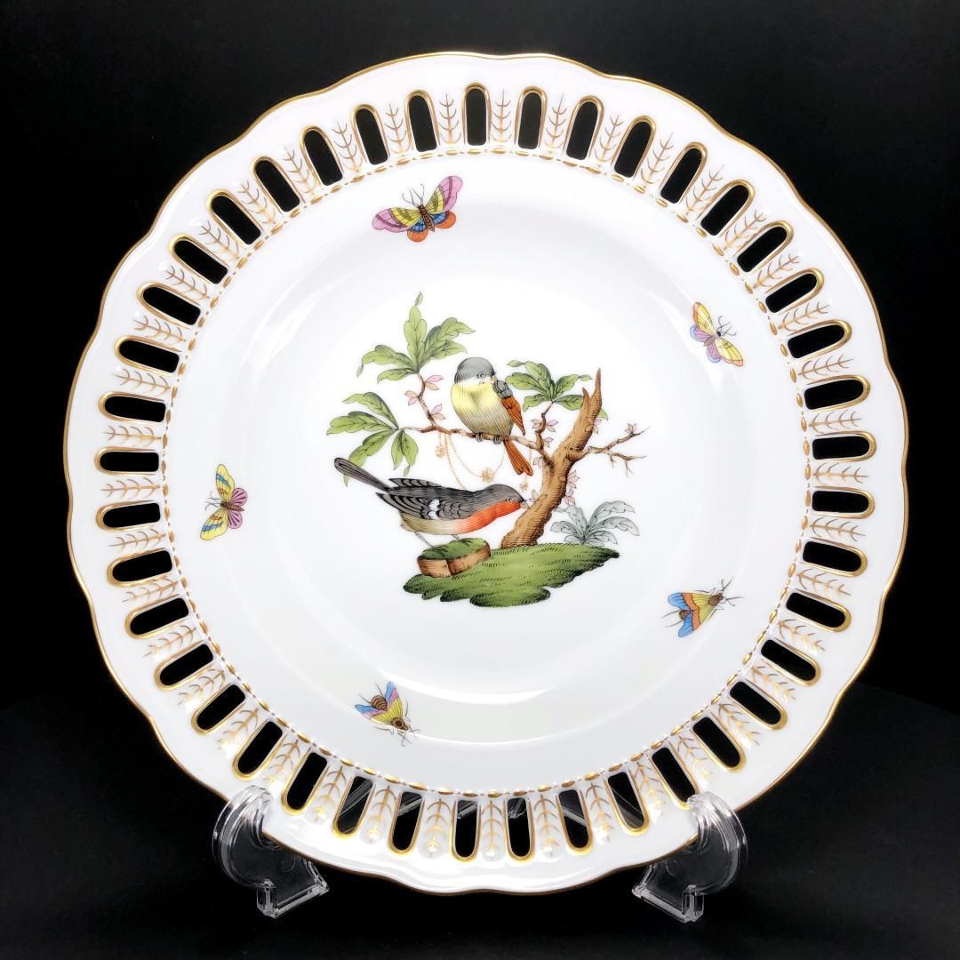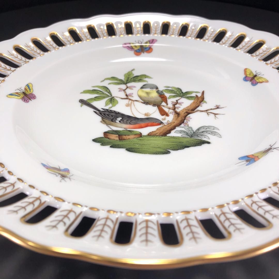 【美品】HEREND ヘレンド/ロスチャイルドバード 金彩 透かし プレート/陶器/ホワイト・マルチカラー