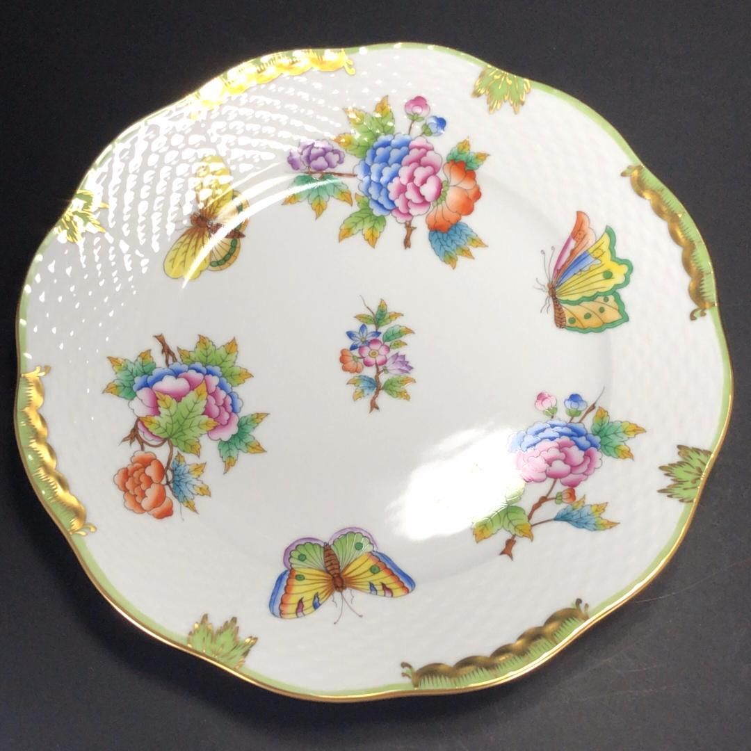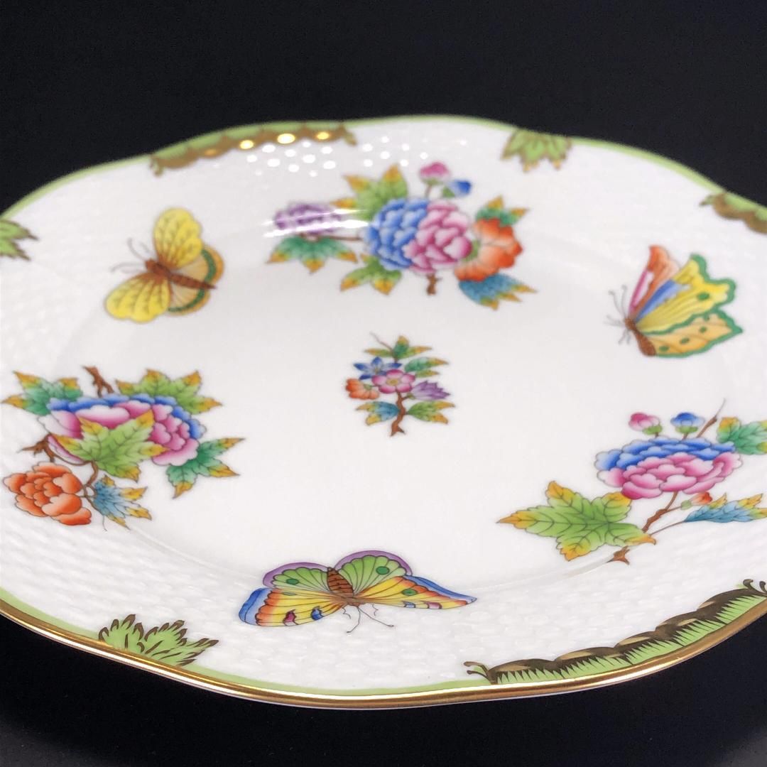 【美品】HEREND ヘレンド/ヴィクトリアブーケ プレート 皿/金彩/花・蝶・フローラル/ホワイト・マルチカラー