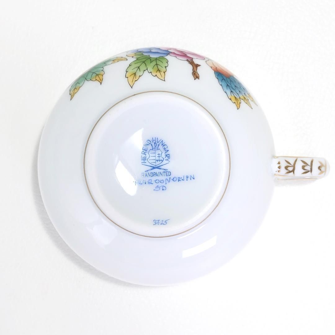 【美品】Herend ヘレンド/ウィーンのバラ デミタス カップ&ソーサー・デザート用ミニ皿 セット/陶器/ホワイト・グリーン