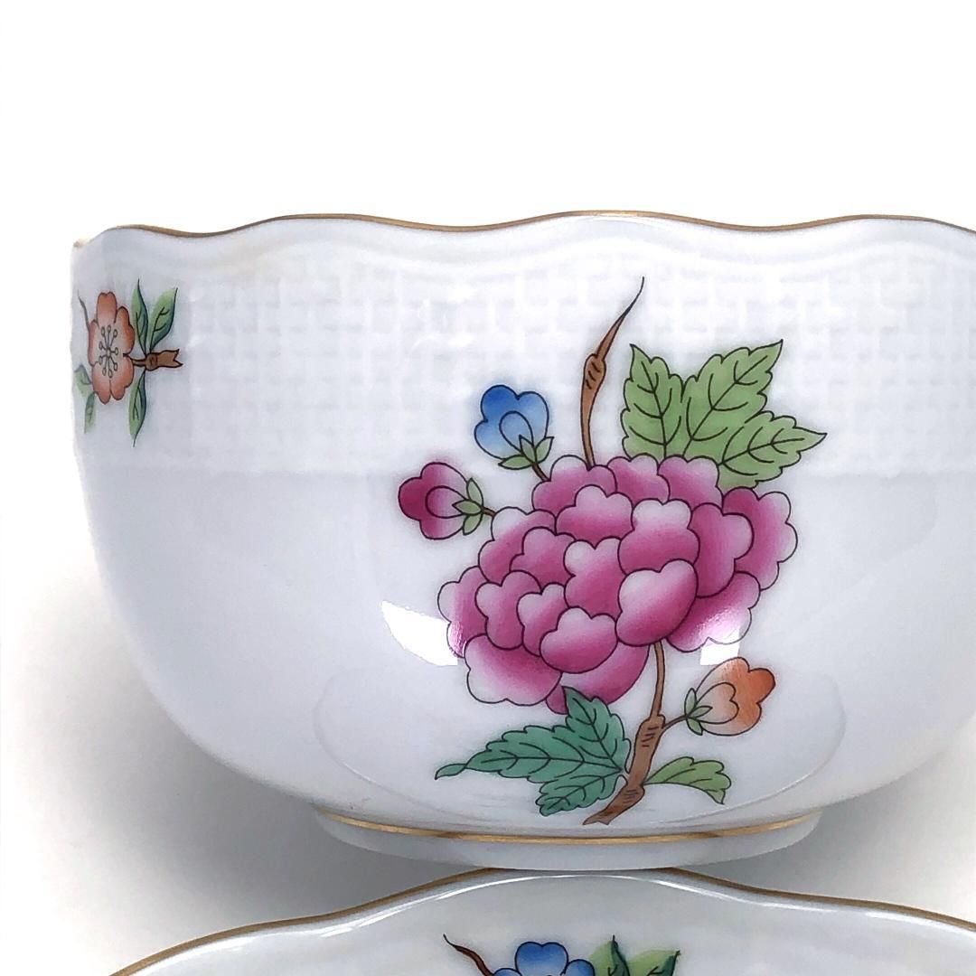 【美品】Herend ヘレンド/ウィーンのバラ デミタス カップ&ソーサー・デザート用ミニ皿 セット/陶器/ホワイト・グリーン