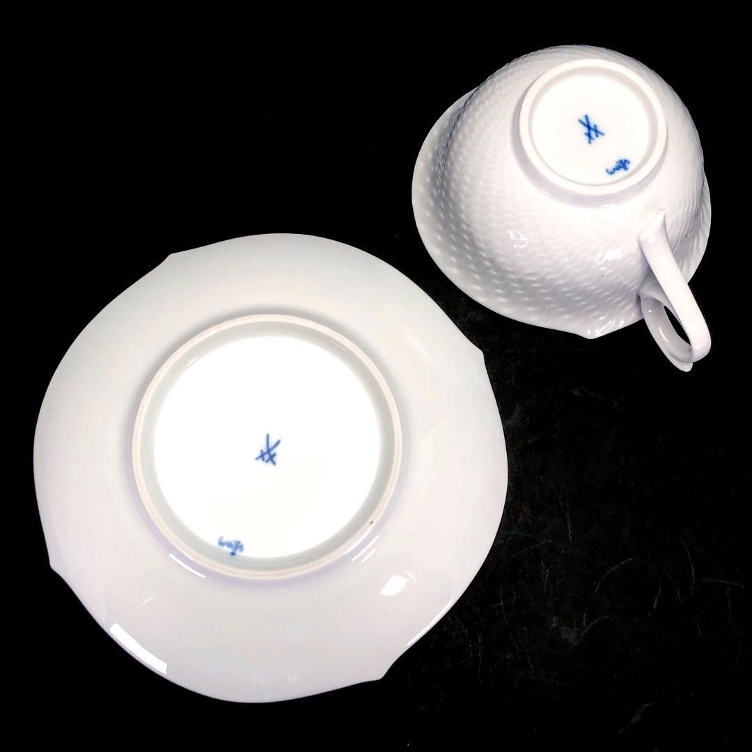 【美品】meissen マイセン/波の戯れ ペア ティー カップ&ソーサー/陶器/ホワイト