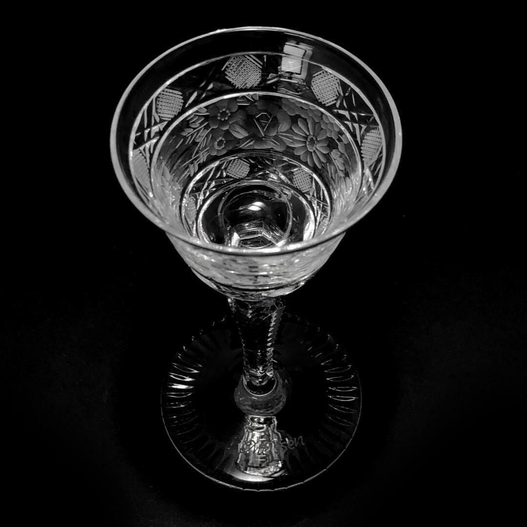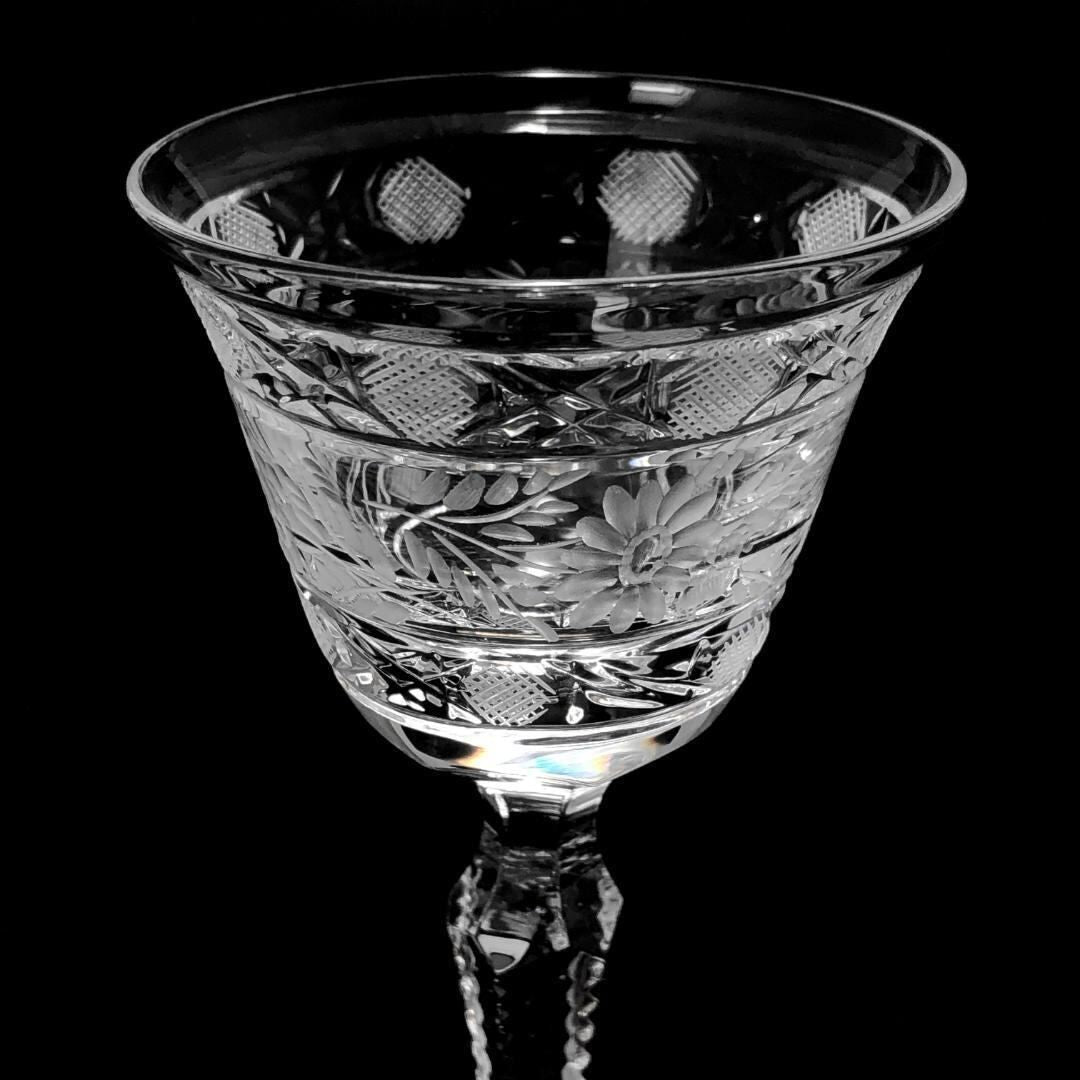 【美品】Meissen crystal マイセンクリスタル/フラワー グレイビング ワイングラス/クリスタルグラス/クリア/MC3