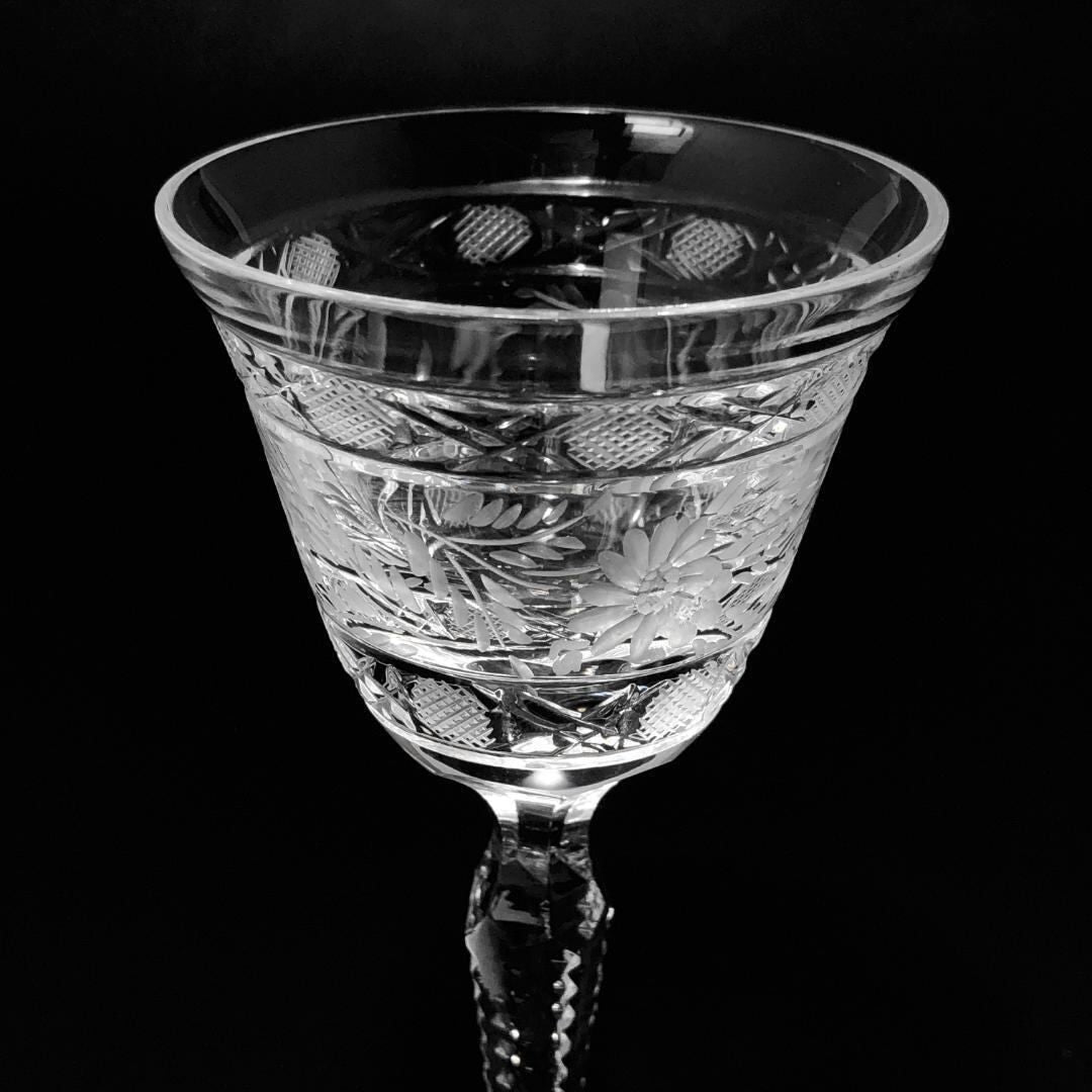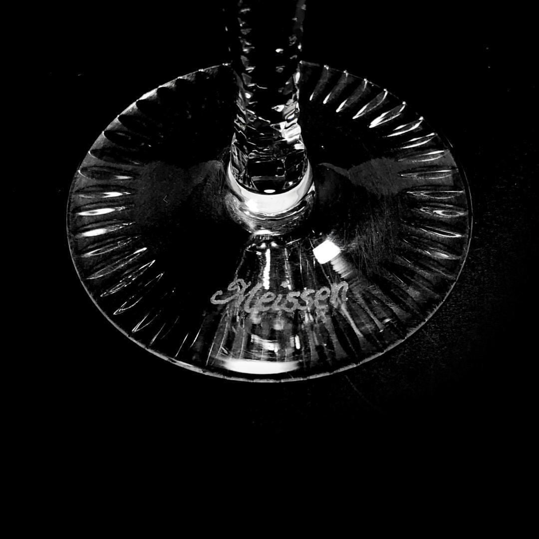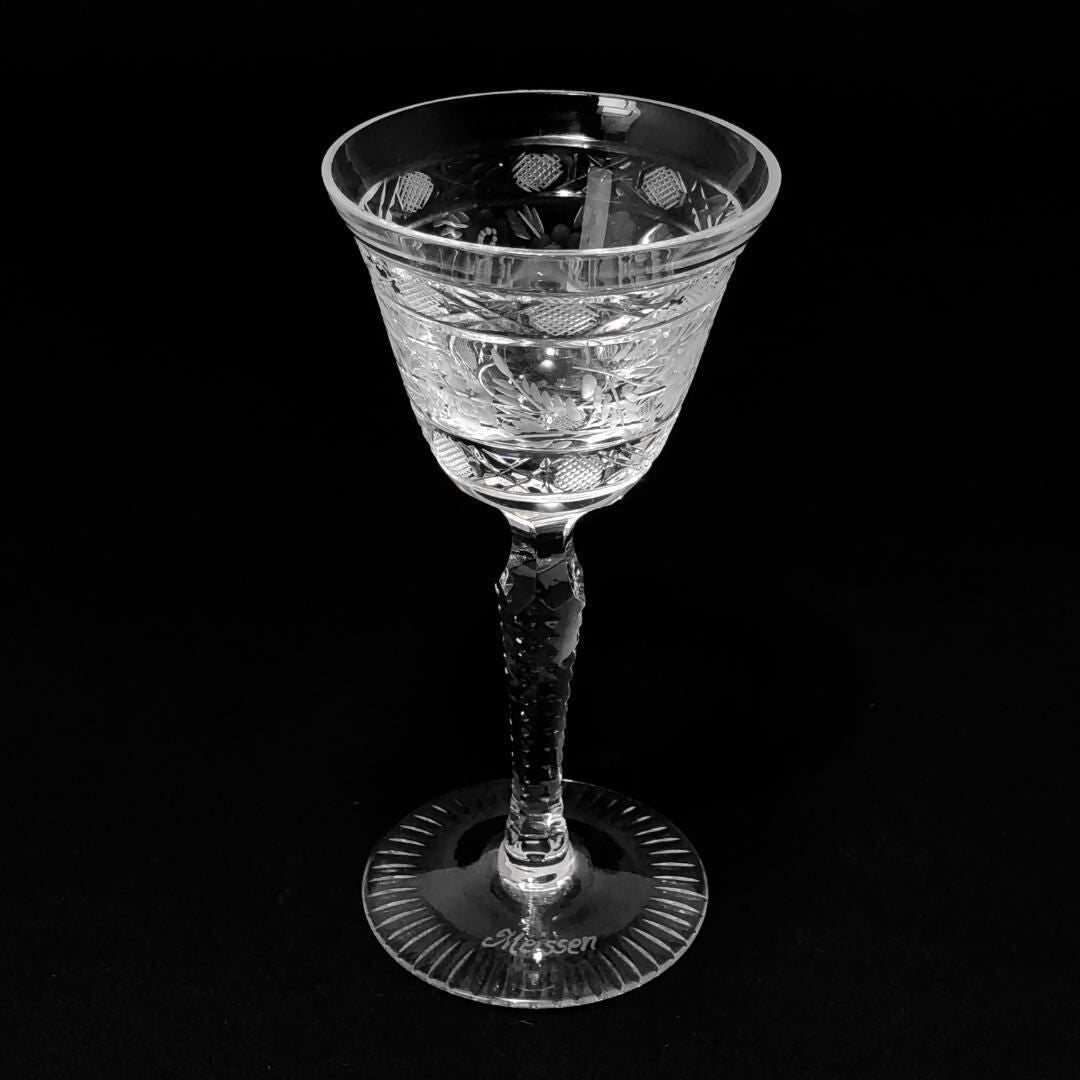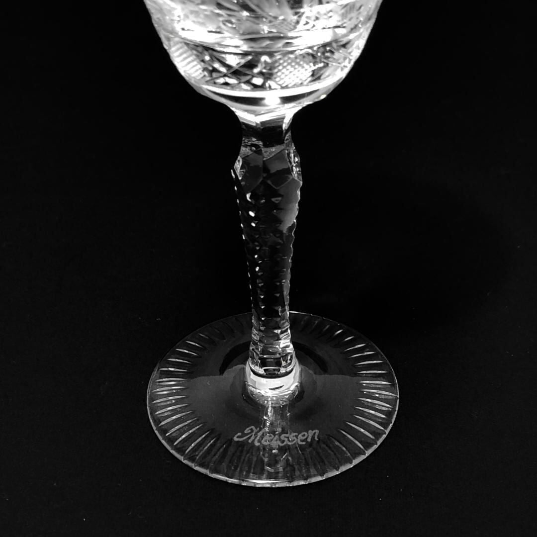 【美品】Meissen crystal マイセンクリスタル/フラワー グレイビング ワイングラス/クリスタルグラス/クリア/MC3