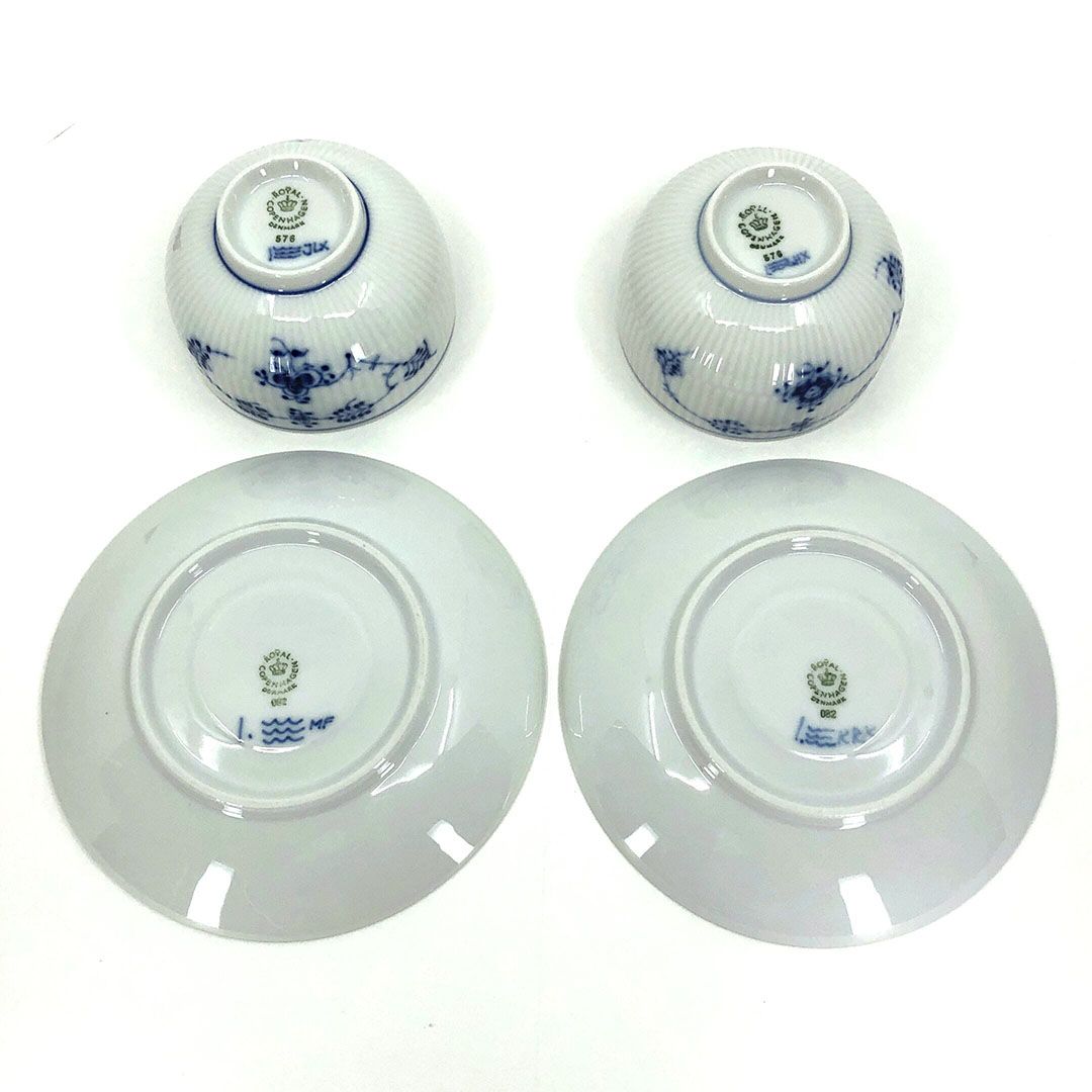 【美品】Royal Copenhagen ロイヤルコペンハーゲン/ブルーフルーテッド プレイン ペア カップ&ソーサー 湯飲み 2客/陶器/ホワイト