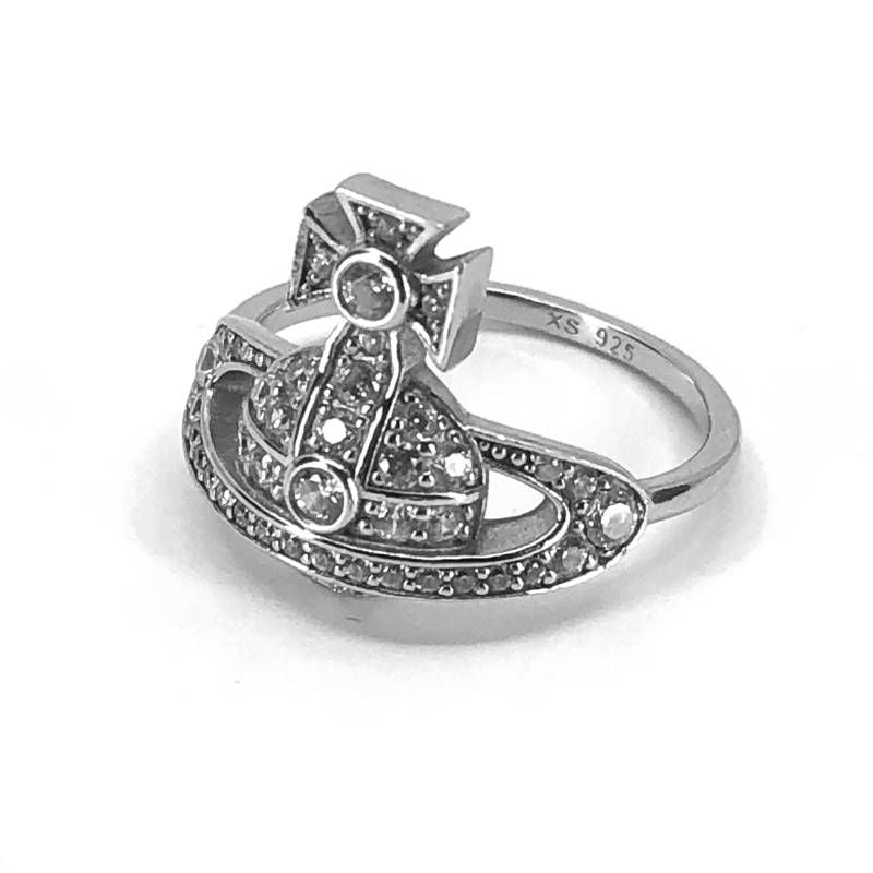 【美品】Vivienne Westwood ヴィヴィアンウエストウッド/オーブモチーフ ラインストーン リング 指輪/SV925/10号/シルバー