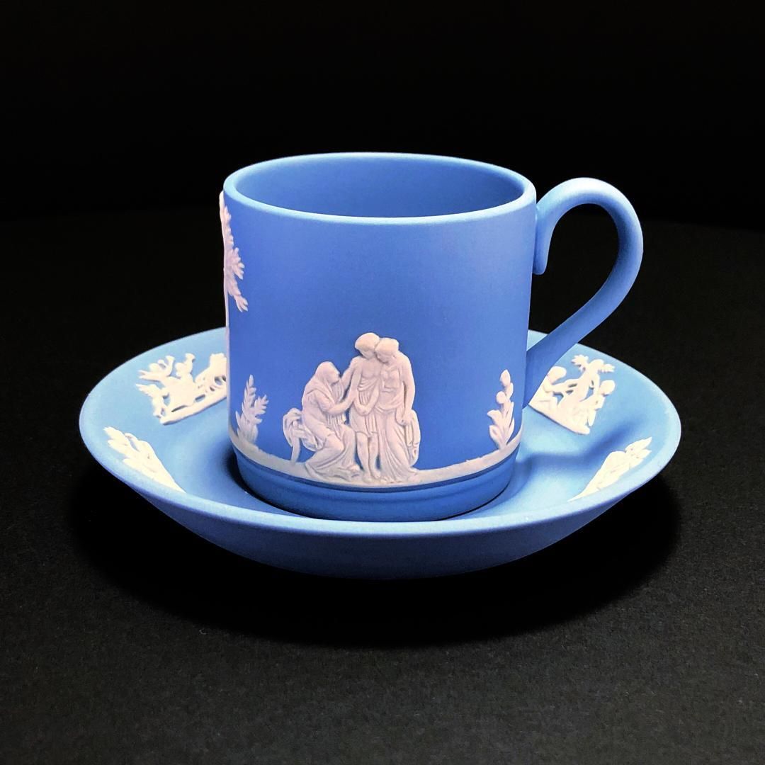 【美品】WEDGWOOD ウェッジウッド/ジャスパー ブルー デミタス カップ&ソーサー プレート 皿 セット/陶器/ブルー