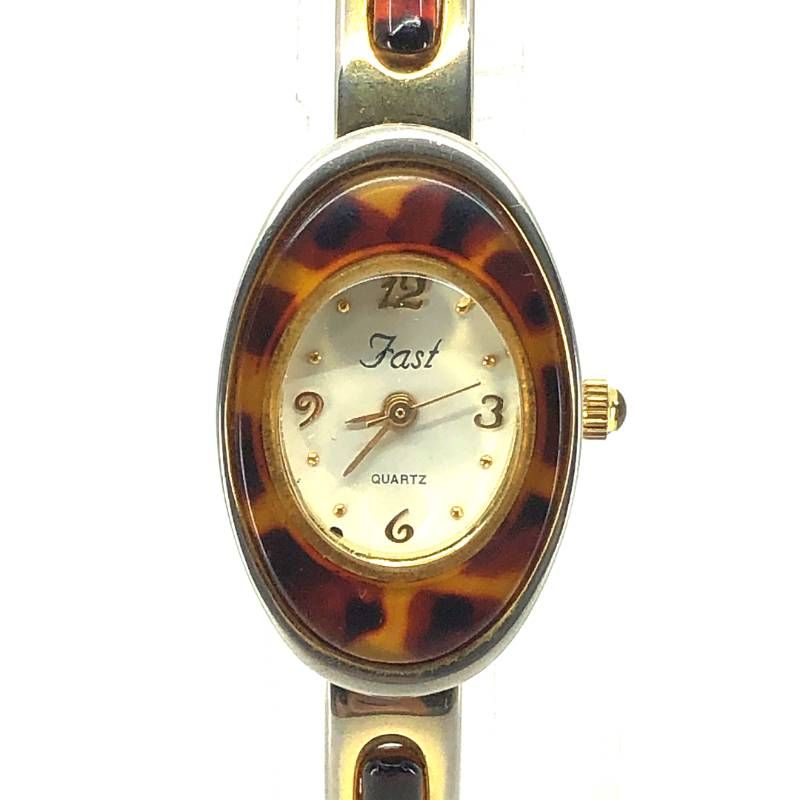 【電池交換済み】Fast ファスト/レディース バングルウォッチ/クォーツ/アセテート・ステンレス/ブラウン・ゴールド