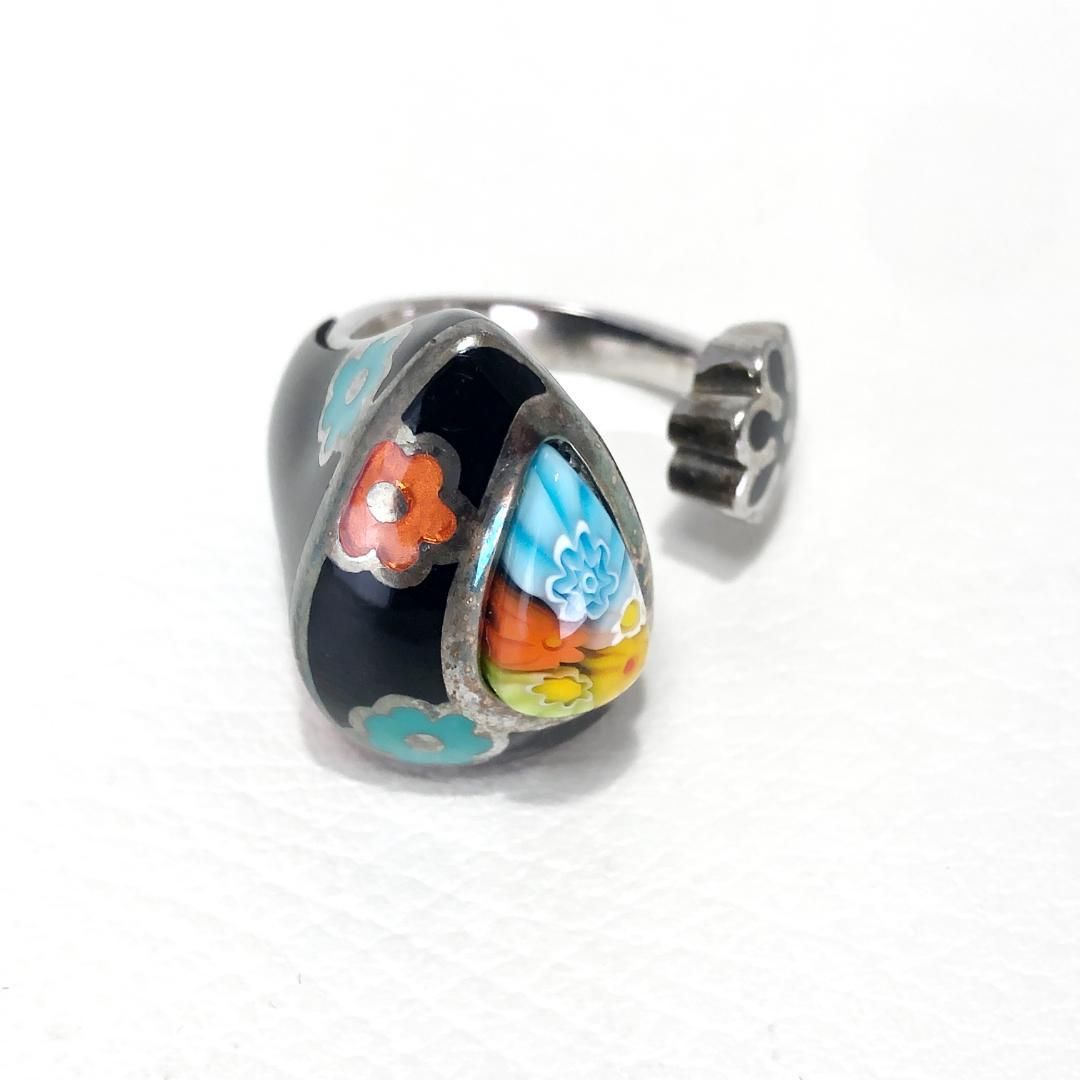 Alan K アランケイ/レディース/ベネチアンガラス リング 花柄 /15号/SV925/シルバー・マルチカラー