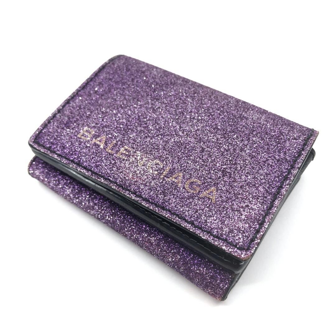 BALENCIAGA バレンシアガ/三つ折り財布 コンパクトウォレット ミニ財布名/レザー・ラメ/パープル