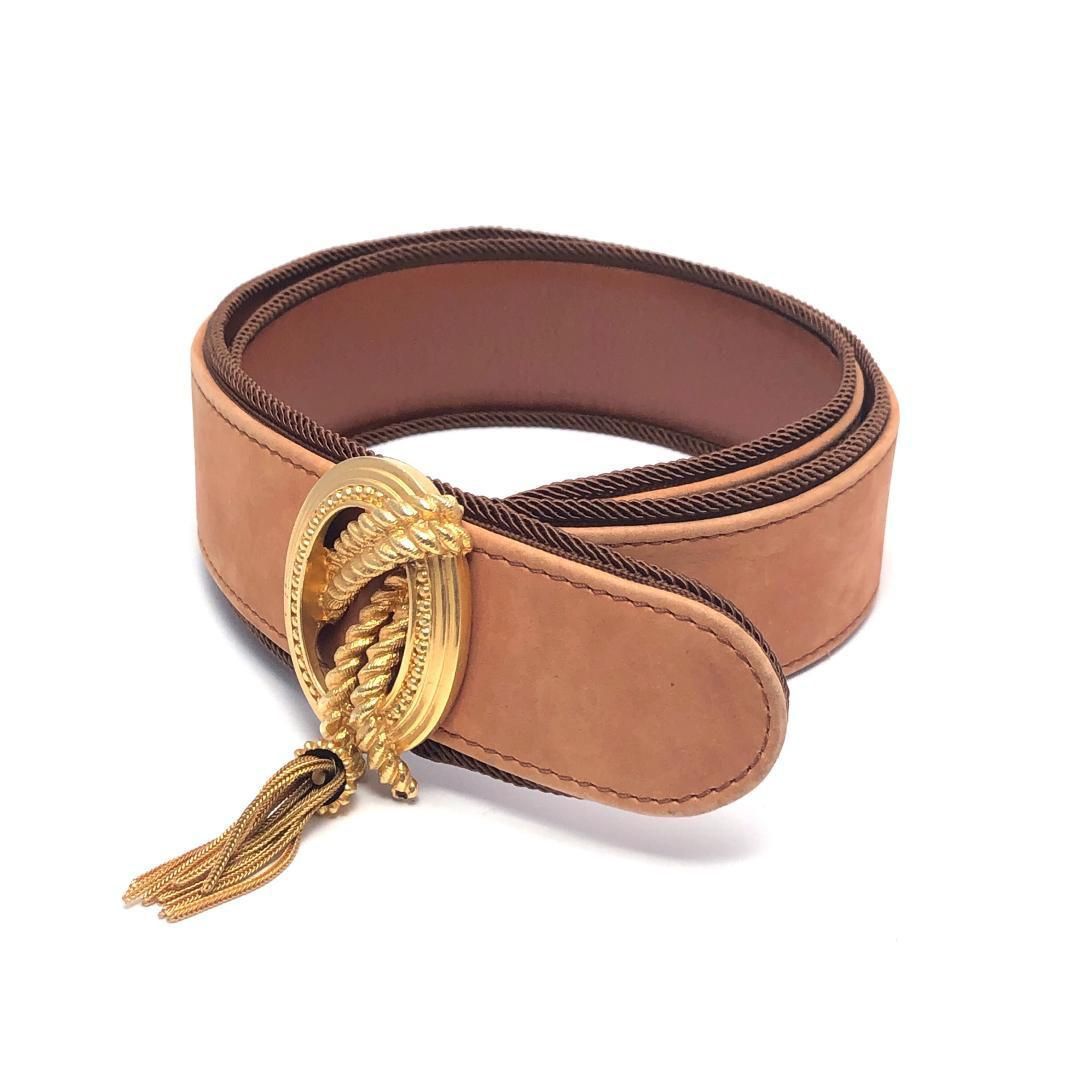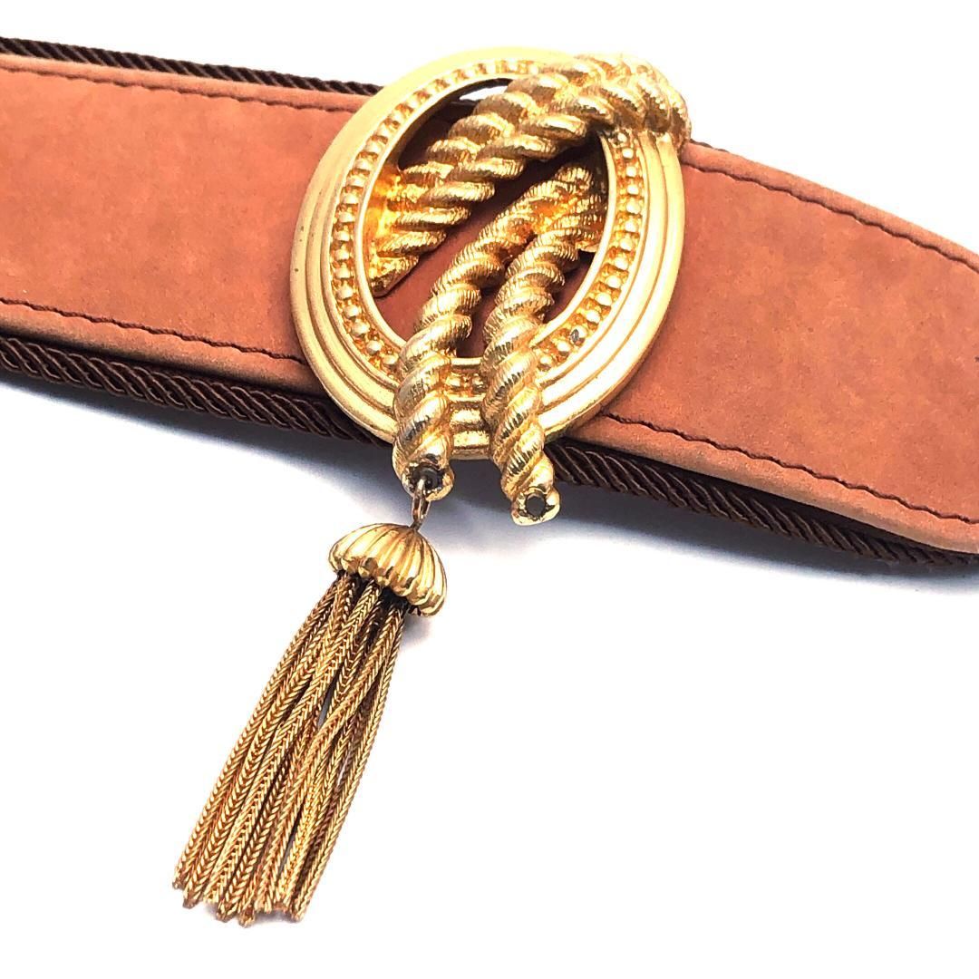 Christian Dior クリスチャンディオール/タッセル スエードレザー ワイドベルト/70/レザー・GP/ブラウン・ゴールド